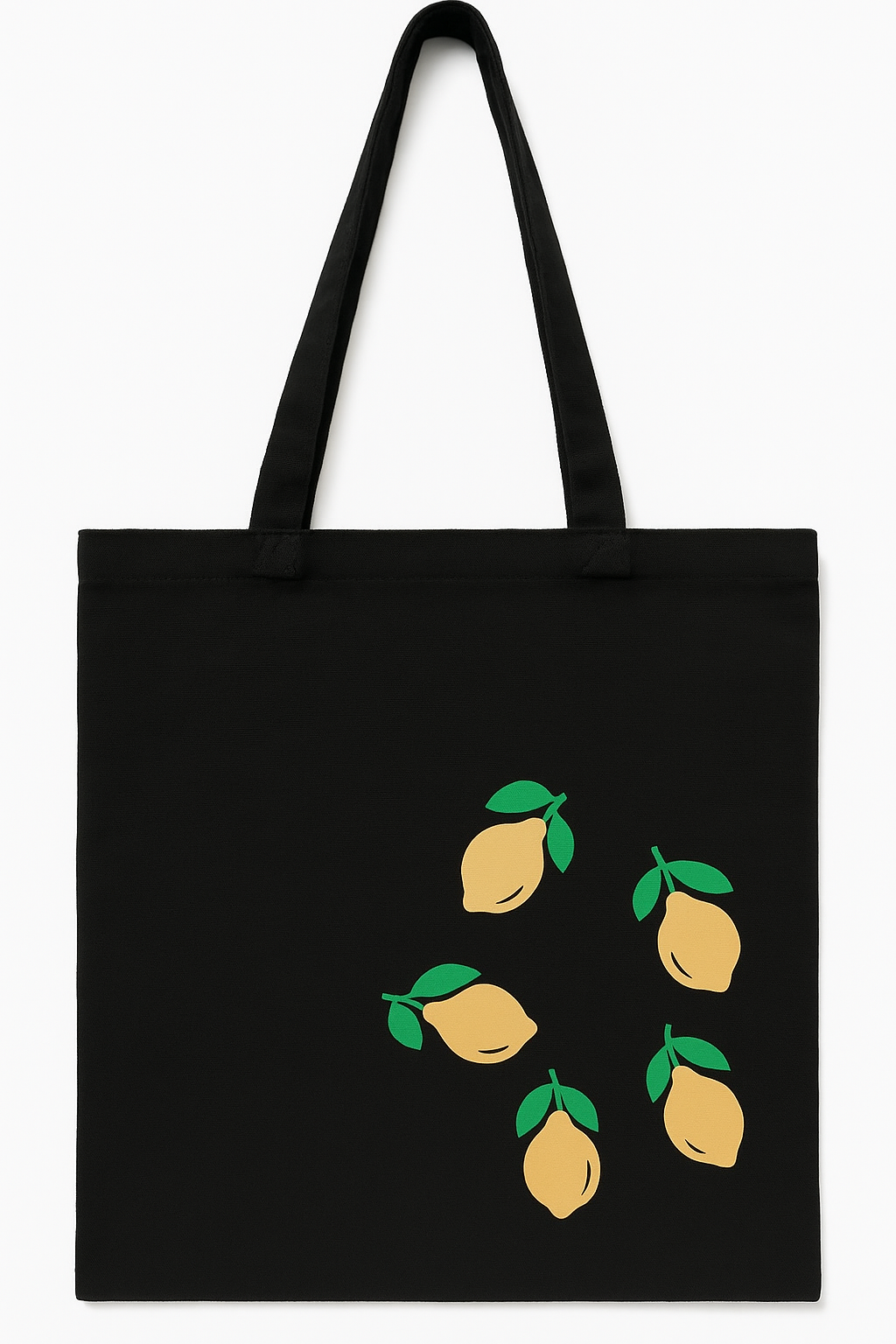Stilren svart tygväska med citronmotiv