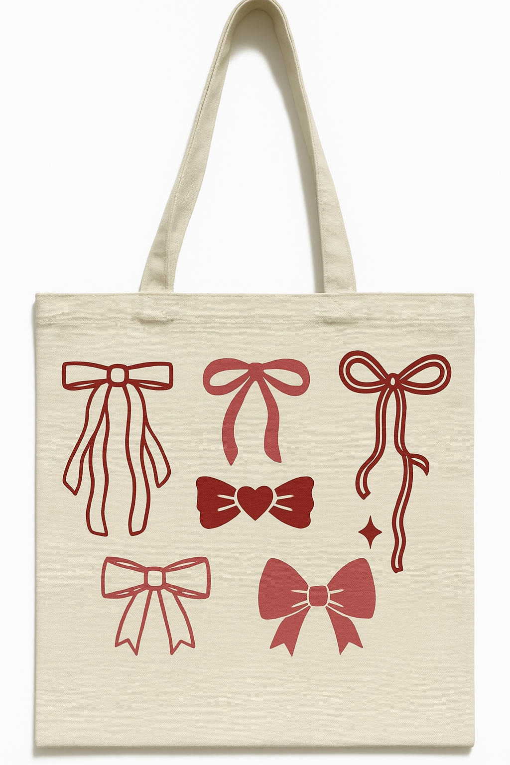 Denna eleganta och mångsidiga tygväska kombinerar stil med funktion. Med sitt rosett tryck blir den en fräsch detalj i vardagen – perfekt för shopping, stranden eller skolan.